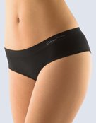 Bokové kalhotky francouzského střihu se širokým bokem, dámské bezešvé prádlo. Pasový kraj je zesílený a zapravený bezešvým způsobem. Nohavičky jsou začištěné podehnutím. Kalhotky jsou jednobarevné. V záložce je vypletené logo v šedé barvě.