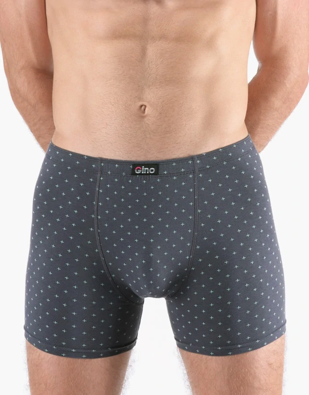 pánské šité prádlo v nadměrných velikostech. V pasovém kraji je zašitá širší pruženka. Nohavičky jsou začištěné podehnutím. Zadní díl je členěný sedlem se dvěma švy. Boxerky jsou potištěny drobným vzorem.