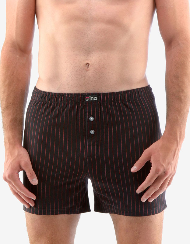 Volné trenky ze 100% bavlny jsou ideální volbou pro každého, kdo má rád klasický pohodlný střih volných trenek a přírodní materiály. Tento kousek má vzor decentních proužků a v pase nášivku s logem Gino. Dobře padnoucí pasová guma a rozparek na dva knoflíky jsou samozřejmostí.