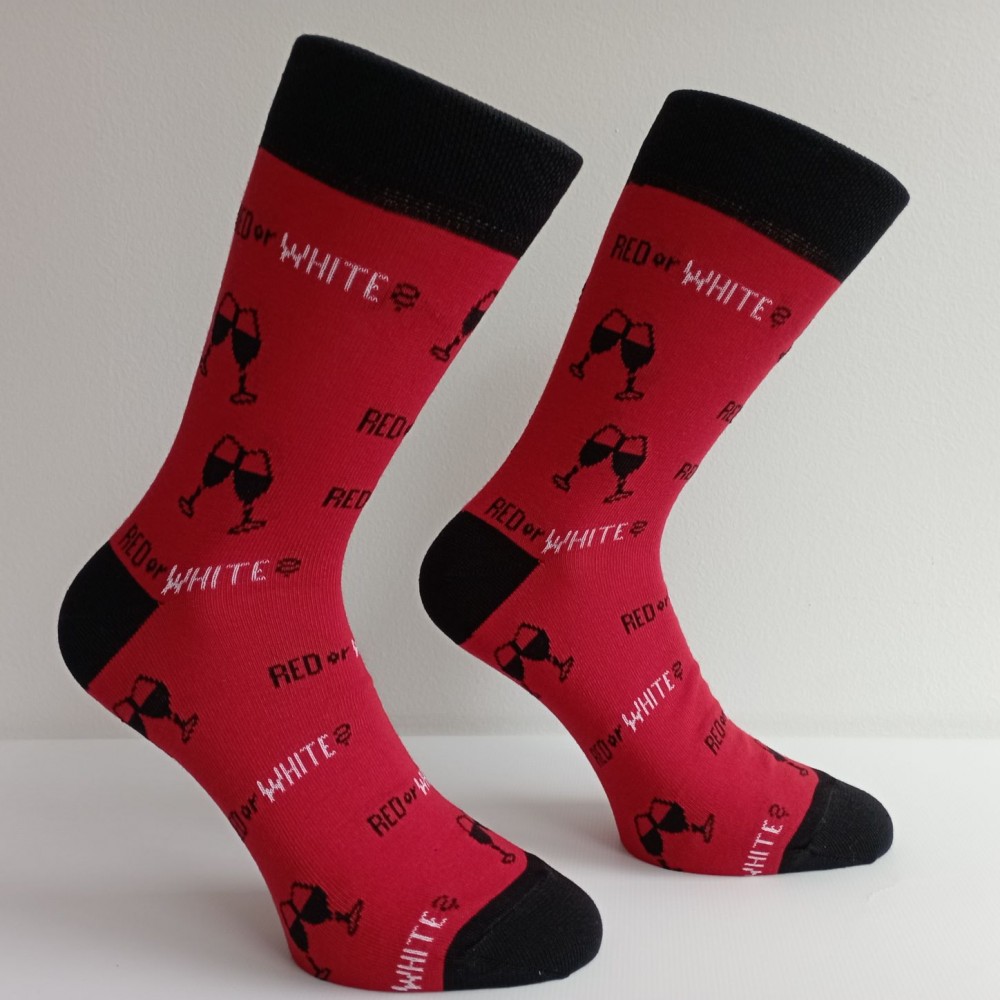 Červené nebo bílé? Pro milovnice vína, ať už si vychutnáváte suché, sladké nebo polosladké. Doplňkem mohou být tyto vzorované ponožky. Ponožky jsou vyrobeny z jemné dlouhovlákné bavlny a díky přidanému elastanu se skvěle přizpůsobí tvaru Vaší nohy. Mají komfortní piké lemy, které se nezařezávají. Špička a pata ponožek jsou zesílené. Sklenku vína si každý užije po svém.