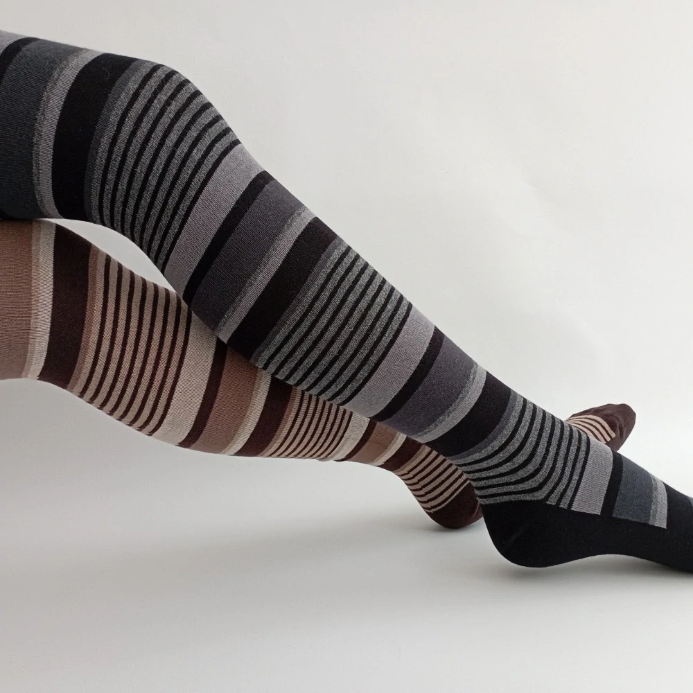 Vzorované dámské punčochové kalhoty. Vyrobeny z příjemné dlouhovlákné bavlny. Velice příjemné a pohodlné nošení díky přidanému elastanu. Komfortní pas s všitým klínem - ploché švy v sedové i v prstové části. Zesílená pata a špička prodlužuje životnost punčochových kalhot a zvyšují jejich odolnost. Sed punčocháčů je jednobarevný - nohavice nepravidelné pruhy. Jsou přesně takové, jaké mají perfektní punčochové kalhoty být. Sukně a šaty budou vašimi věrnými průvodci, i když teploty venku hodně poklesnou. Trendy krok za krokem Měkké a příjemné díky vysokému podílu bavlny S elastanem, dobře drží tvar, perfektně sedí a výborně se nosí Pohodlný pas a komfortní klín Zesílená špička a pata Extra ploché švy v oblasti prstů a sedu Neprůhledné Vhodné pro postavu s maximální šířkou přes boky 108 cm Vyráběné velikosti: 158-164/108 a 170-176/108 Složení|: 80% Bavlna, 18% Pyamid, 2% Elastan Velikost punčocháčů