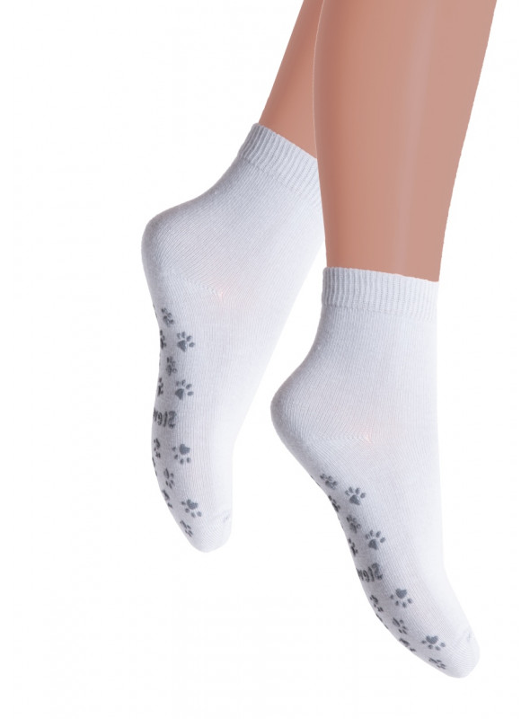 Dětské bavlněné ponožky s protiskluzovým potiskem ABS. Značka STEVEN vyrábí ponožky z vysoce kvalitní bavlněné příze. Doporučujeme na podzimní a zimní období.