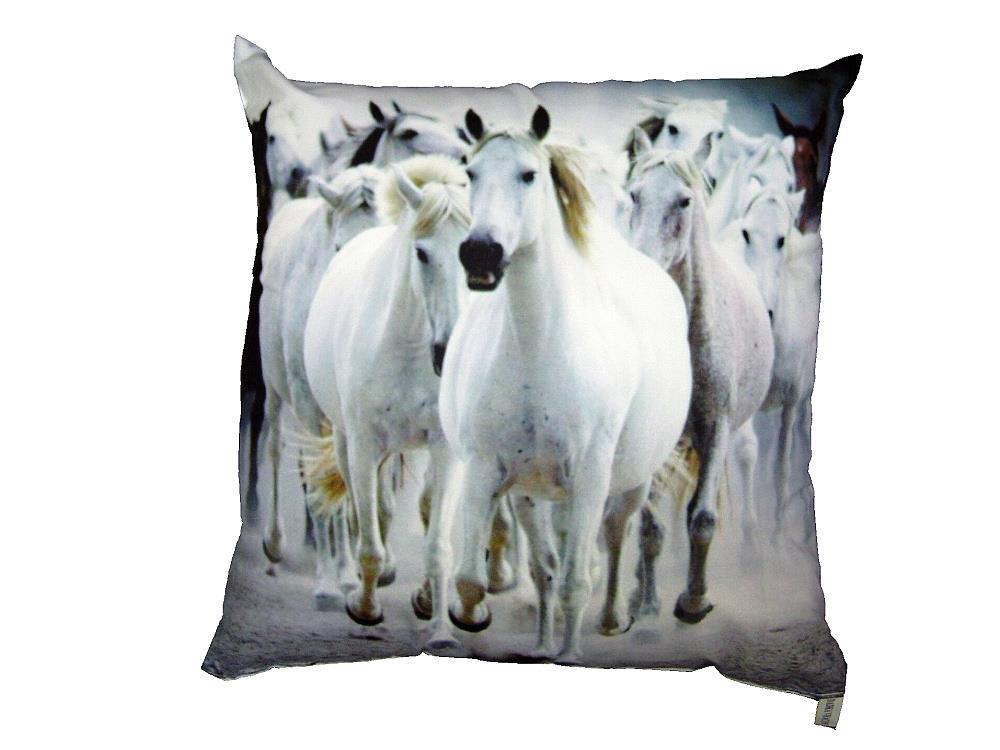 Fotopolštářek s motivem stáda bílých koní. Rozměr polštářku je 40x40 cm.