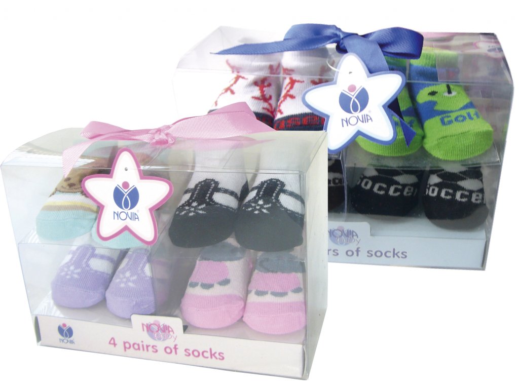 Kojenecké ponožky "Multipack" v dárkové krabičce Barva: dívčí, chlapecká Balení: 4 páry od velikosti Velikost: 0-12měsíců