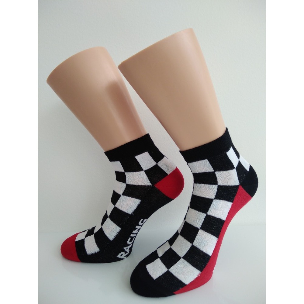Pánské barevné nízké ponožky, které nejsou fádní, ani konzervativní a každý si jich všimne. Originalita, pohodlí, styl. Kousek s nápaditým vzorem startovacího praporku. Kombinace kvalitní bavlny s elastanovým vláknem pro příjemné nošení a tvarovou stabilitu. Paty a špice zesíleny pro delší životnost. Extra plochý šev v oblasti prstů.