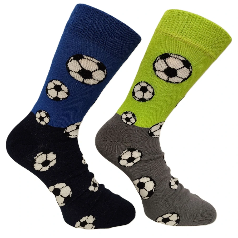 Design těchto ponožek tě prostě odliší od všední šedi. Originalita, pohodlí, styl. Kousek s nápaditým vzorem fotbalových míčů, který stojí za oživení jakéhokoli outfitu všedního dne. Kombinace kvalitní bavlny s elastanovým vláknem pro příjemné nošení a tvarovou stabilitu. Paty a špice zesíleny pro delší životnost. Extra plochý šev v oblasti prstů. Dvojité komfortní lemy – nesklouzávají ani se nezařezávají.