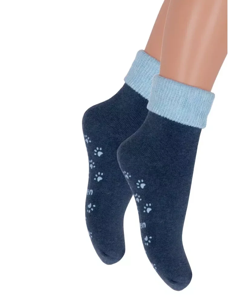 Chlapecké froté bavlněné ponožky s protiskluzovým gelovým potiskem ABS 155/019 Steven. Ponožky jsou zakončené přeloženým lemem. Značka STEVEN vyrábí ponožky z vysoce kvalitní bavlněné příze, která poskytuje maximální pohodlí při nošení. Doporučujeme na podzimní a zimní období.