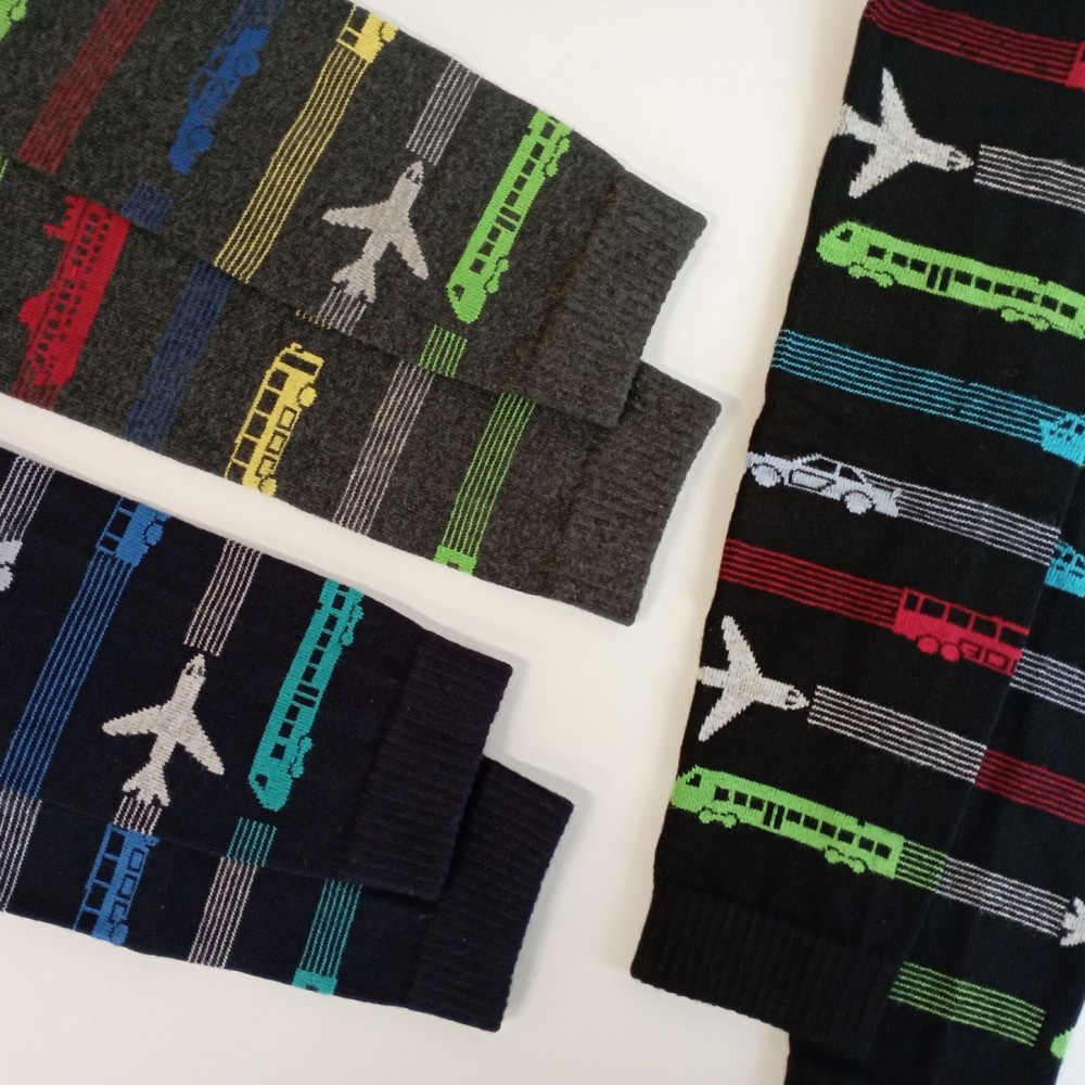 Chlapecké leginy se vzorem dopravních prostředků. Vyrobeny z kvalitní bavlněné příze. Pohodlné při nošení díky přidanému elastanu, který se přizpůsobí tvarům dětských nožek. Tyto legínky mají komfortní pas s všitou gumou v tunýlku, který se nezařezává ani nesklouzává. Pro větší pohodlí při nošení je v legínkách všitý klín. Nohavice bez rušivých bočních švů. V dolní části jsou ukončeny pružným piké lemem.