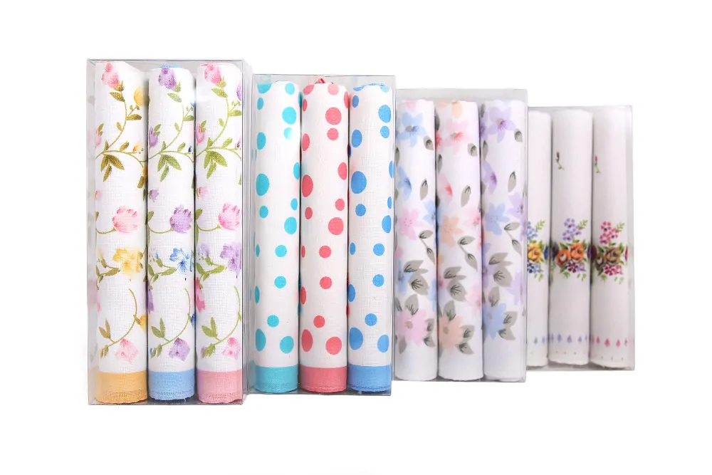 Dámské kapesníky - dárková krabička. Baleno po 3 ks. Motiv - dle skladových zásob.