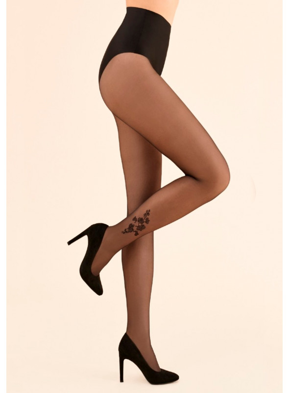 Dámské punčochové kalhoty s jemným květinovým vzorem nad kotníkem Flavia 467 GABRIELLA. Punčochové kalhoty nemají vyznačenou kalhotkovou část. Neviditelná výztuha na prstech a bavlněný klín s plochým švem zaručují maximální pohodlí a komfort při nošení. Punčochové kalhoty jsou vyrobeny z velmi kvalitních elastických vláken, které se přizpůsobí nohám a zdůrazní jejich štíhlý tvar.