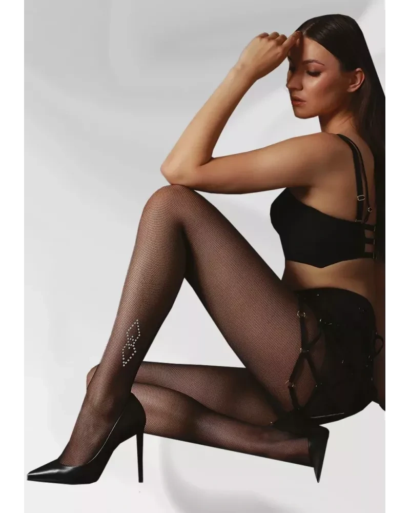 Dámské vzorované punčochové kalhoty z mikrovlákna Spotlight Knittex. Punčocháče jsou se vzorem imitujícím síťovinu a nalepenými malými kamínky.