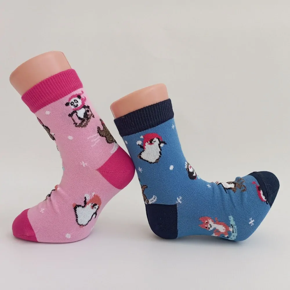 Dětské barevné ponožky se zvířátky. Originalita, pohodlí, styl. Kousek s nápaditým vzorem, který stojí za oživení dětského outfitu všedního dne. Jsou vyrobeny z jemné dlouhovlákné bavlny a díky přidanému elastanu se skvěle přizpůsobí tvaru dětské nohy. Mají extra plochý šev v oblasti prstů a komfortní lemy, které se nezařezávají. Špička a pata ponožek jsou zesílené.