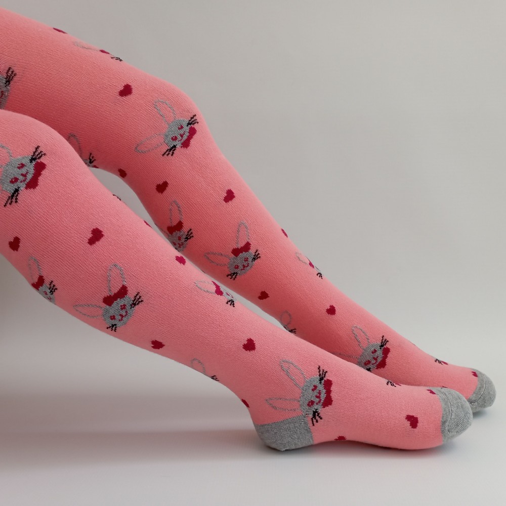 Kojenecké a dívčí punčocháče se zajíčky. Originalita, pohodlí, styl. Kousek s nápaditým vzorem, který stojí za oživení dětského outfitu. Punčocháče jsou vyrobeny z jemné dlouhovlákné bavlny a díky přidanému elastanu se skvěle přizpůsobí tvaru dětské nohy. Mají komfortní lemy, které se nezařezávají. Špička a pata je zesílena pro delší životnost.