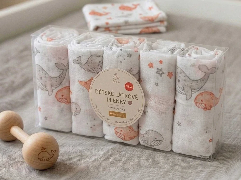 Látková plena 70x70 cm Velryba oranžová (balení 5 ks)290 Kč/ ks240 Kč bez DPH