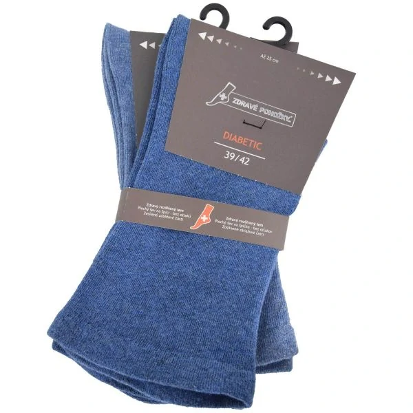 Unisex bavlněné rozšířené zdravotní diabetické ponožky v klasické výšce s jemným svěrem lemu. Pohodlí zajišťuje plochý šev na špici (tzv. řetízkování) a trvanlivost ponožek pak zesílení (zdvojené pletení) v oblasti paty a špice. Rozšířené hladké klasické ponožky se příjemně nosí a nesjíždí. Skvěle drží díky své elasticitě a neškrtí díky pohodlnému lemu a povolené celé horní části. Zdravotní rozšířené diabetické jednobarevné ponožky se jednoduše navlékají. Vhodné pro diabetiky. Roztáhnou se až na 50cm. Balení 2 páry. Barva: džínová melír.mostí.
