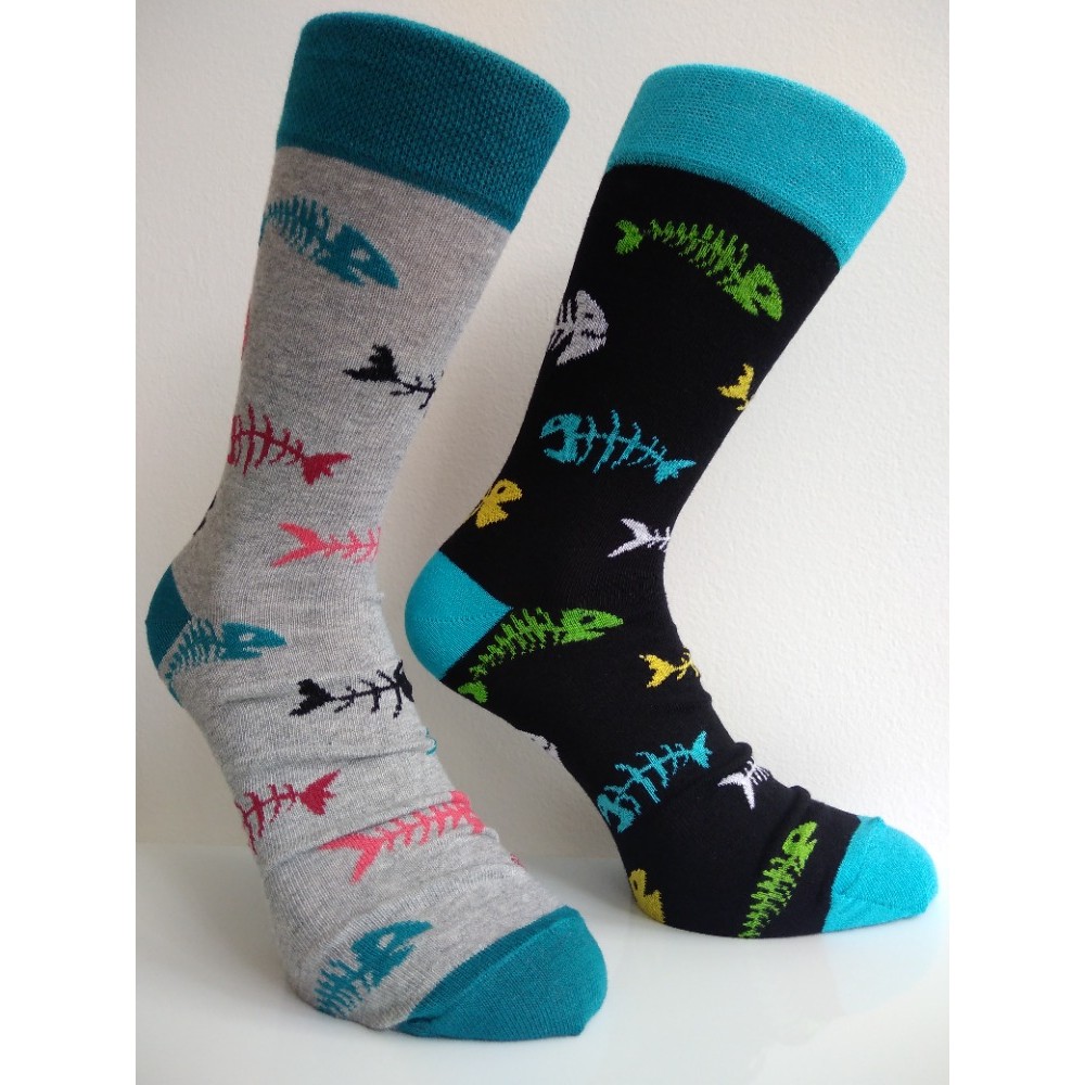 Pánské barevné ponožky s kostrami ryb, které nejsou fádní, ani konzervativní a každý si jich všimne. Osvědčený design a zajímavě zvolené barvy. Originalita, pohodlí, styl. Kousek s nápaditým vzorem, který stojí za oživení jakéhokoli outfitu běžného dne. Kombinace kvalitní bavlny s elastanovým vlákn... celý popis