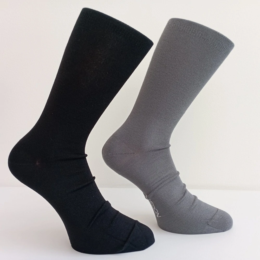 Exkluzivní ponožky HELEAN jsou vyrobeny z bambusové viskózy. Díky elegantnímu vzhledu jsou ponožky ideální k pánskému obleku do zaměstnání, do společnosti nebo pro volný čas i pro muže, kteří vyhledávají ponožky s nesvíravým a dobře roztažným lemem. Bambusové ponožky jsou velmi prodyšné a dokonale p... celý popis