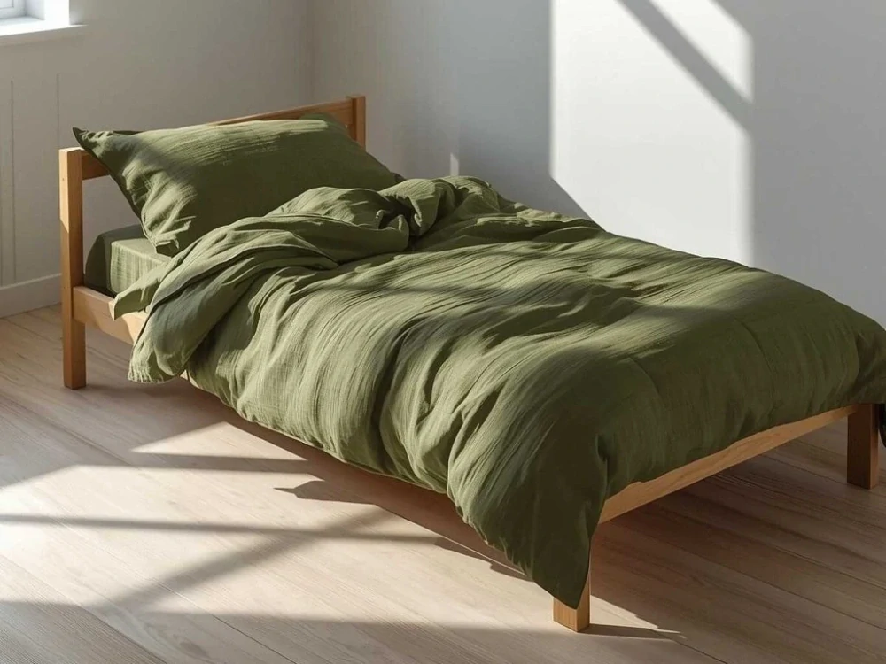 Nadčasové mušelínové povlečení Olivové v jemném přírodním zeleném tónu vnese do ložnice pocit rovnováhy, klidu a blízkosti přírody. Olivová barva působí uklidňujícím dojmem, podporuje relaxaci a vytváří harmonické prostředí pro kvalitní odpočinek. Jednobarevné provedení je elegantní a snadno kombinovatelné – krásně ladí s prostěradly v barvách béžové, krémové, bílé, světle hnědé nebo šedé. Ideální volba pro ložnice laděné do přírodního, skandinávského i moderního stylu.