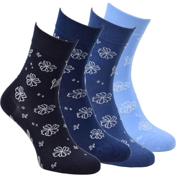 Dámské bavlněné jednobarevné elastické džínové ponožky bez gumičekurčené k běžnému nošení i pro volný čas. Pohodlí zajistí plochý šev na špici(ruční řetízkování) a trvanlivost ponožek pak zesílení (zdvojené pletení) v oblasti paty a špice. RS klasické vzorované ponožky s kytičkami se příjemně nosí a nesjíždí.Skvěle drží díky své elasticitě a hlavně neškrtí díky pohodlnému ruličkovému zdravotnímu lemu bez gumiček.RS zdravotní ponožky se jednoduše navlékají, dobře se nosí a díky kvalitnímu provedení vydrží rozhodně déle, než jednu sezónu!