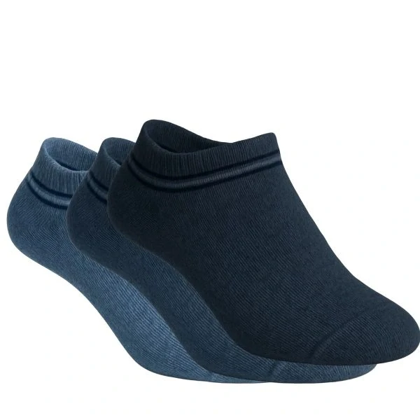 Pánské letní bavlněné elastické sneaker džínové ponožky s jemným pruhováním. Ponožky mají zesílené zátěžové části, řetízkovanou špici a příjemný lem. Balení: 3 páry. Barva: odstíny modré melír (viz obrázek).