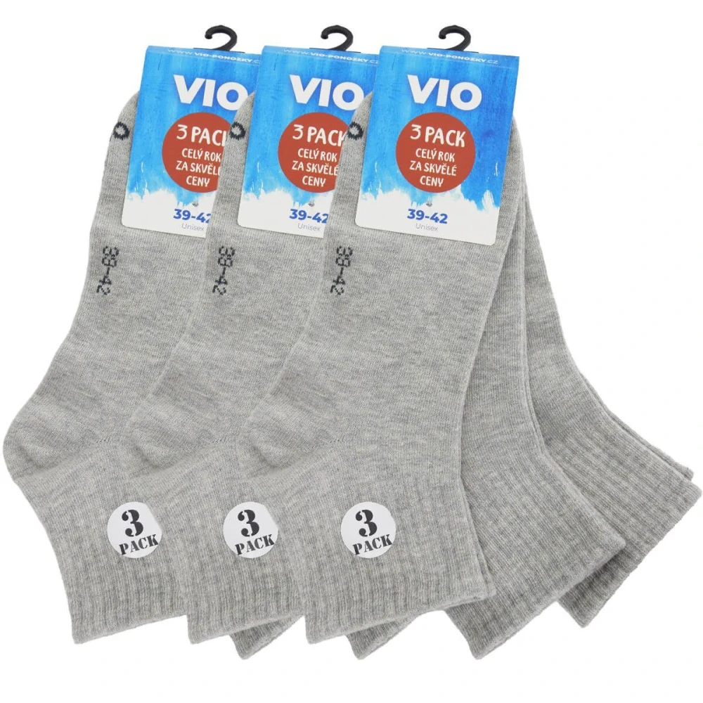 3. VIO bavlněné kotníkové jednobarevné ponožky 3-pack šedá - 53008 - 9 párů