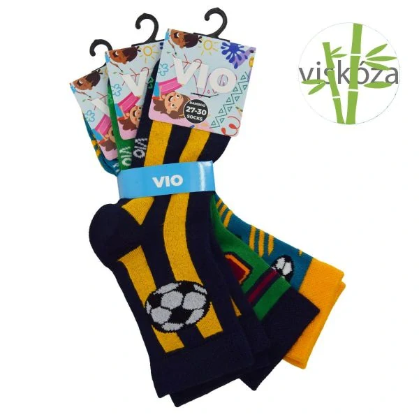 3. VIO dětské barevné bambusové vzorované elastické ponožky kluk - 81017 - 3 páry