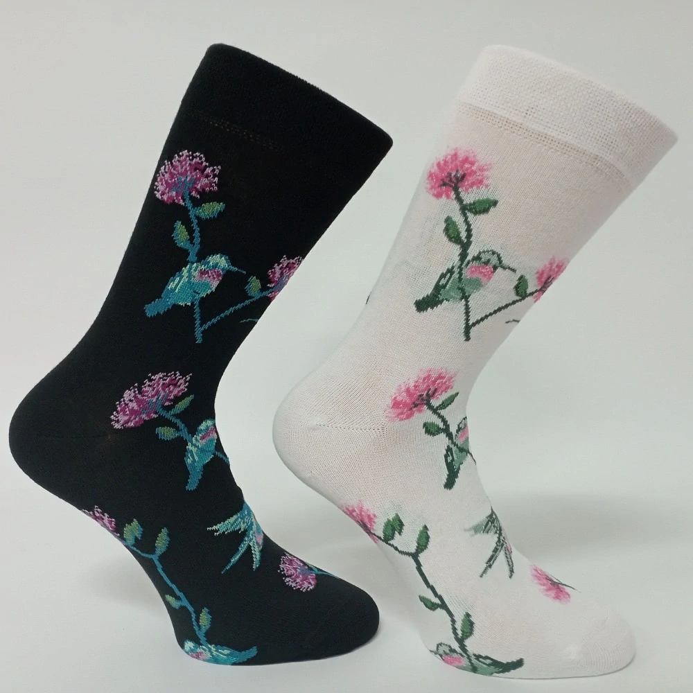 Kolibřík je nejmenší pták na světě, a pokud jste velmi potichu, můžete slyšet hučení vydávané jeho křídly, které neustále mávají.Vraťte se do přírody s těmito ponožkami, jsou skvělým způsobem, jak ukázat svou lásku k přírodě a jsou módní záležitostí, která zaručeně zaujme! Vzorované ponožky s kolibříky. Kombinace kvalitní dlouhovlákné bavlny s elastanovým vláknem pro příjemné nošení a tvarovou stabilitu. Paty a špice jsou zesíleny pro delší životnost namáhaných částí. Extra plochý řetízkový steh v oblasti prstů. Dvojité komfortní piké lemy – nesklouzávají ani se nezařezávají.