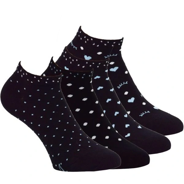 Dámské bavlněné jednobarevné elastické letní sneaker ponožky s jemným vzorem. Příjemně nosí a nesjíždí. Skvěle drží díky své elasticitě a neškrtí díky pohodlnému lemu. Sneaker vzorované ponožky mají řetízkovanou špici a zesílené zátěžové části (patu a špici). Kvalitní provedení zaručuje dlouhodobou tvarovou i barevnou stálost.Balení: 4 páry. Barva: černá (viz obrázek).