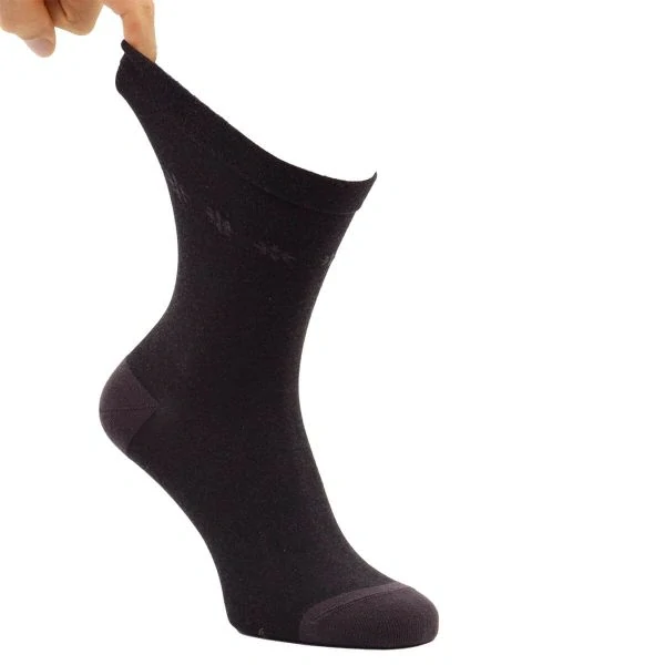 Jednobarevné dámské bavlněné ponožky s příjemným nesvíravým rozšířeným lemem. Pohodlí zajišťuje plochý šev na špici (ruční řetízkování) a trvanlivost ponožek pak zesílení (zdvojené pletení) v oblasti paty a špice. Bavlněné jednobarevné Zdravé ponožky se příjemně nosí a nesjíždí a hlavně neškrtí díky povolenému lemu. Jemný vzor - bordurka. 2 páry v balíčku. Barva: hnědá.