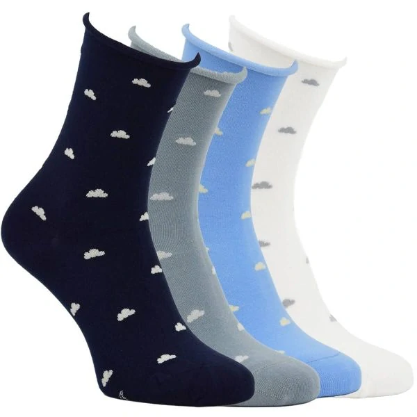 - Zdravé ponožky dámské zdravotní vzorované ruličkové ponožky bez gumiček s obláčky mix - 61002 - 4 páry