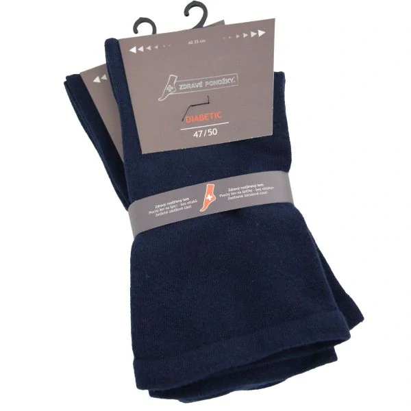 Pánské nadměrné bavlněné rozšířené zdravotní diabetické ponožky v klasické výšce. Pohodlí zajišťuje plochý šev na špici (tzv. řetízkování) a trvanlivost ponožek pak zesílení (zdvojené pletení) v oblasti paty a špice. Rozšířené hladké klasické ponožky se příjemně nosí a nesjíždí. Vysoký obsah bavlny Skvěle drží díky své elasticitě a neškrtí díky pohodlnému lemu a povolené celé horní části. Zdravotní rozšířené diabetické jednobarevné ponožky v nadměrné velikosti se jednoduše navlékají, dobře se nosí a díky kvalitnímu provedení vydrží rozhodně déle. Balení 2 páry. Barva: modrá