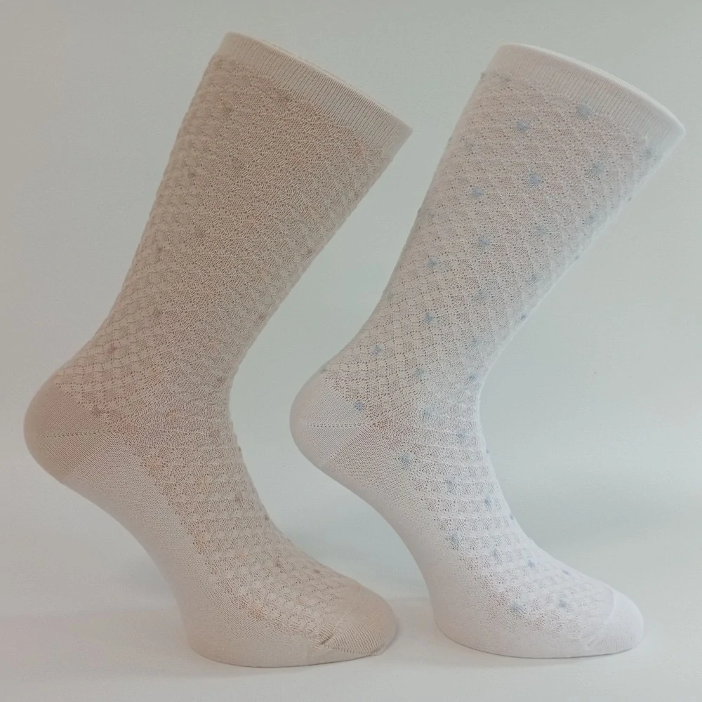 Dámské vzdušné ponožky s 80% podílem kvalitní dlouhovlákné bavlny, 18% polyamid a 2% elastan. Velmi jemné ruličkové lemy vhodné při zdravotních problémech s oteklými nohami, ponožky nesvírají nohy a nedělají otlaky. Velmi příjemné, vzdušné a pohodlné při nošení. Ponožky jsou vhodné pro každodenní nošení.